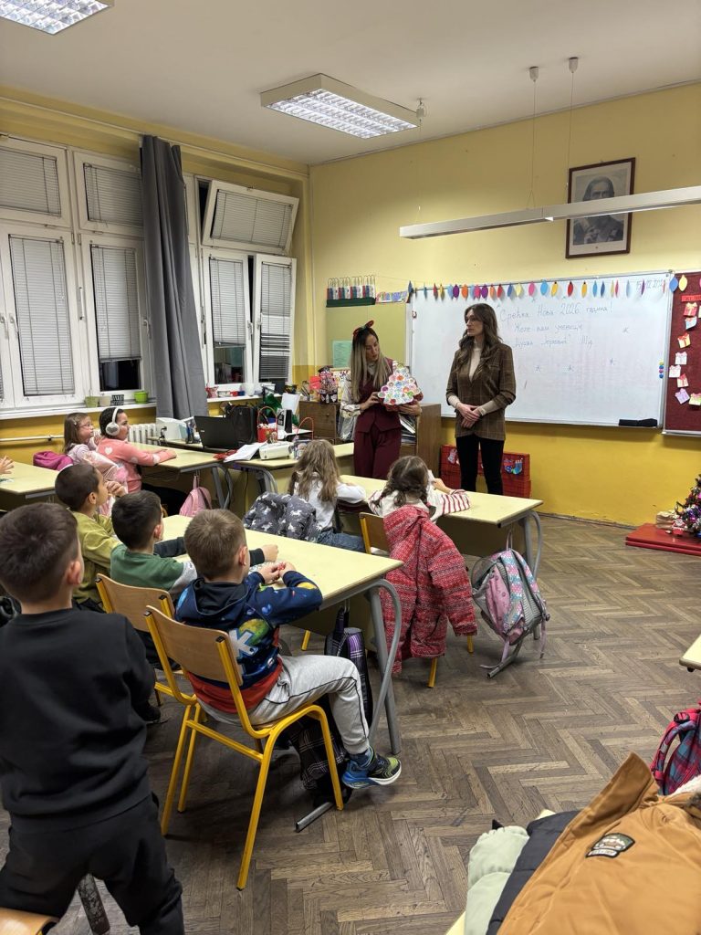 Као знак пажње и захвалности, од првака смо добили корпицу са лепим порукама и слаткишима, уз жељу да се ово пријатељство настави и убудуће. Наши ученици поклонили су првацима честитке и јелку напуњену слаткишима. Дружење је протекло у топлој атмосфери, испуњеној осмесима, лепом речју и заједничком радошћу, показујући колико је лепо и важно неговати сарадњу и пријатељство међу школама.