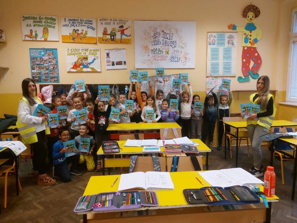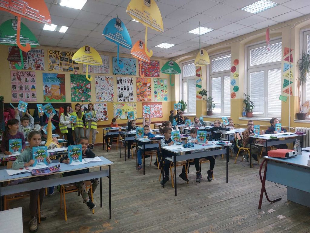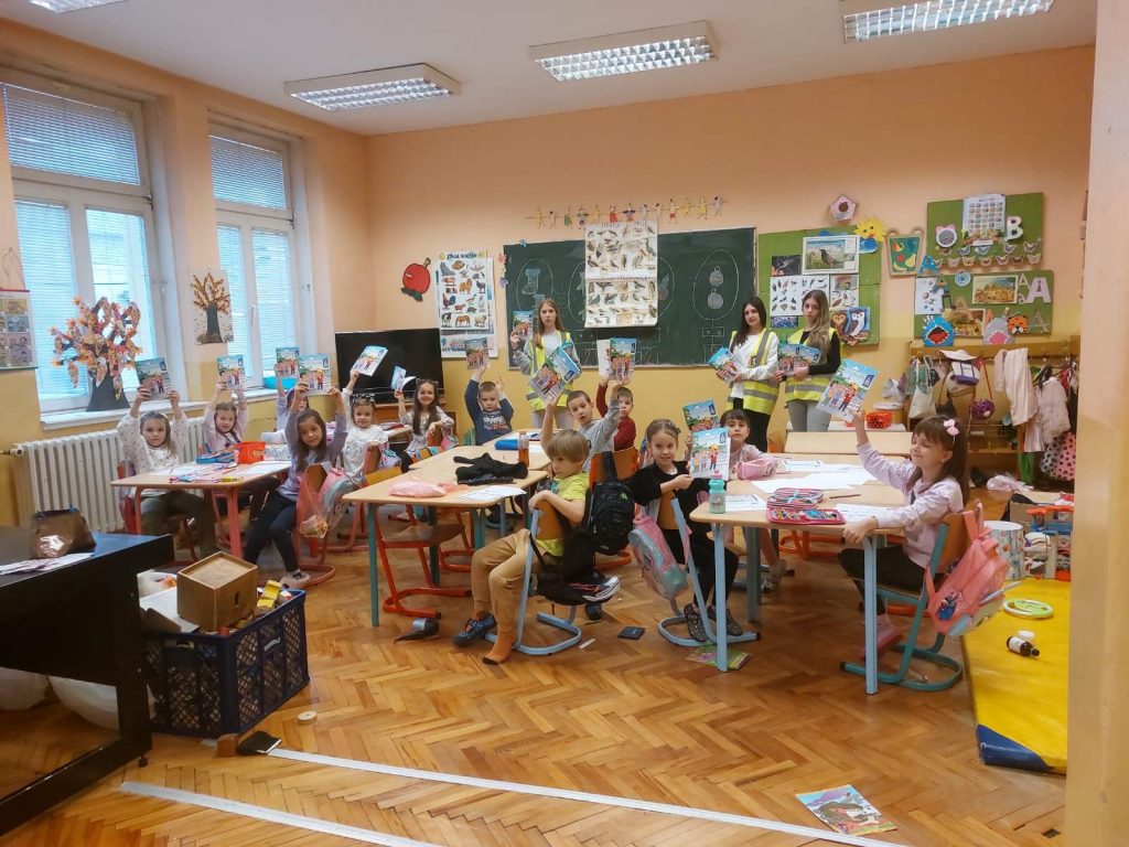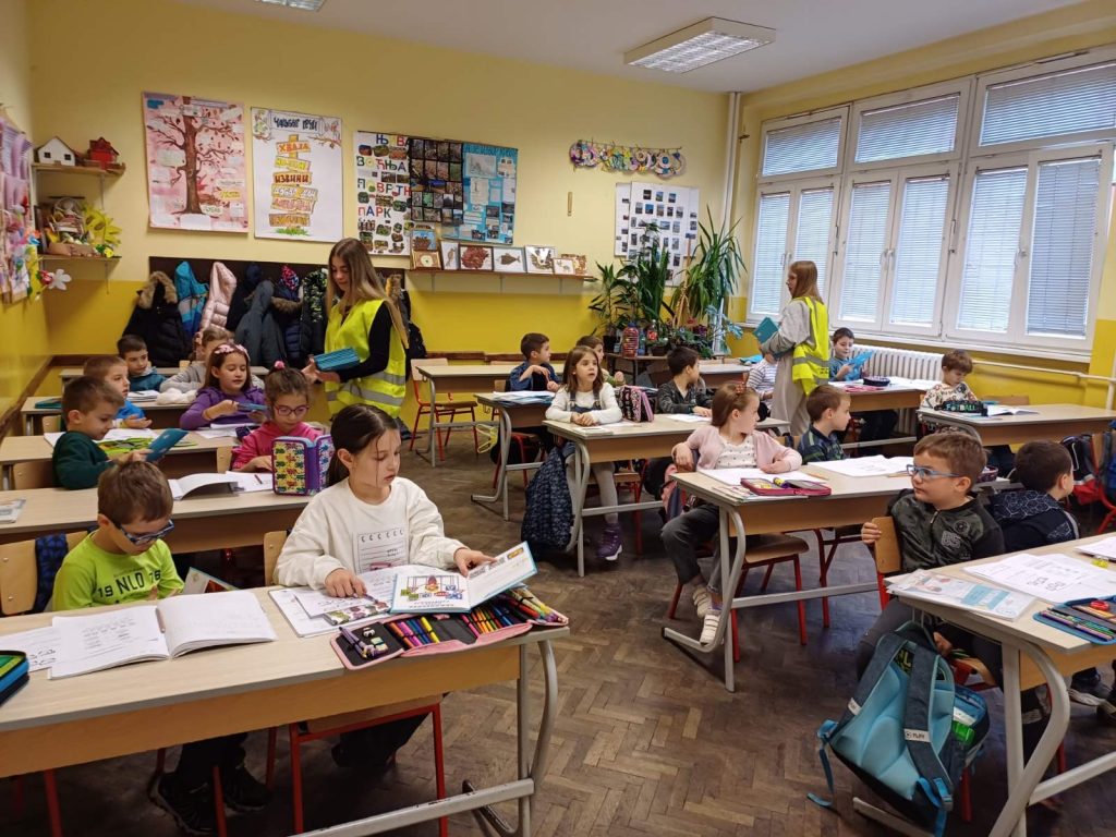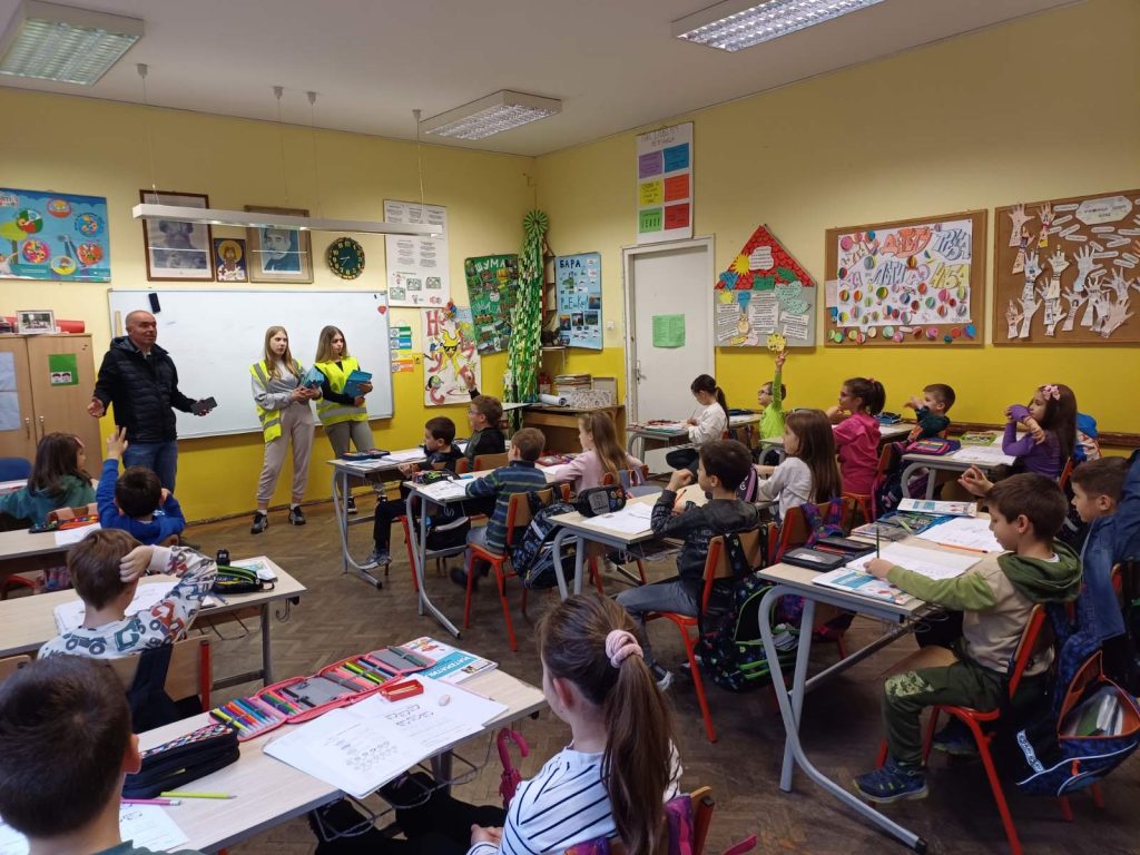 Чланови секције су са малишанима разговарали о основним правилима безбедног понашања у саобраћају и том приликом су им уручили едукативне књиге и бојанке „Пажљивкова правила у саобраћају“.