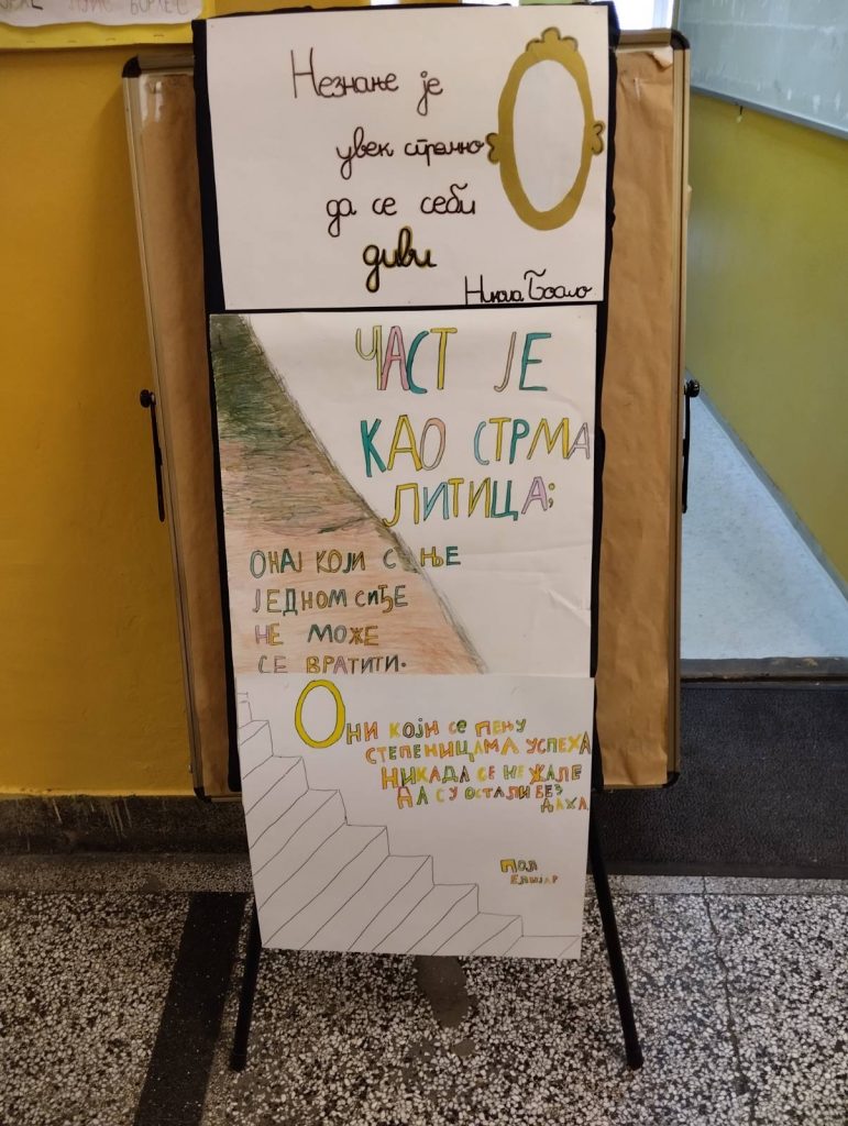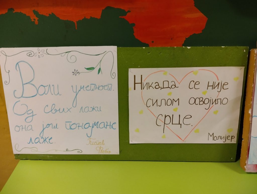 Поводом Дана школе чланови Библиотечке секције и библиотекарка Мирјана поставили су изложбу старих позивница за Дан школе и изложбу књижевних дела песника Радомира Андрића, бившег ученика наше школе.