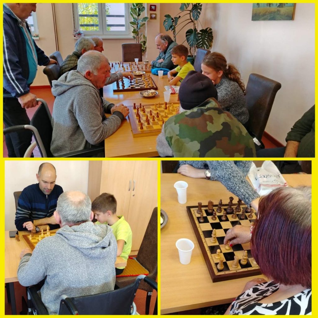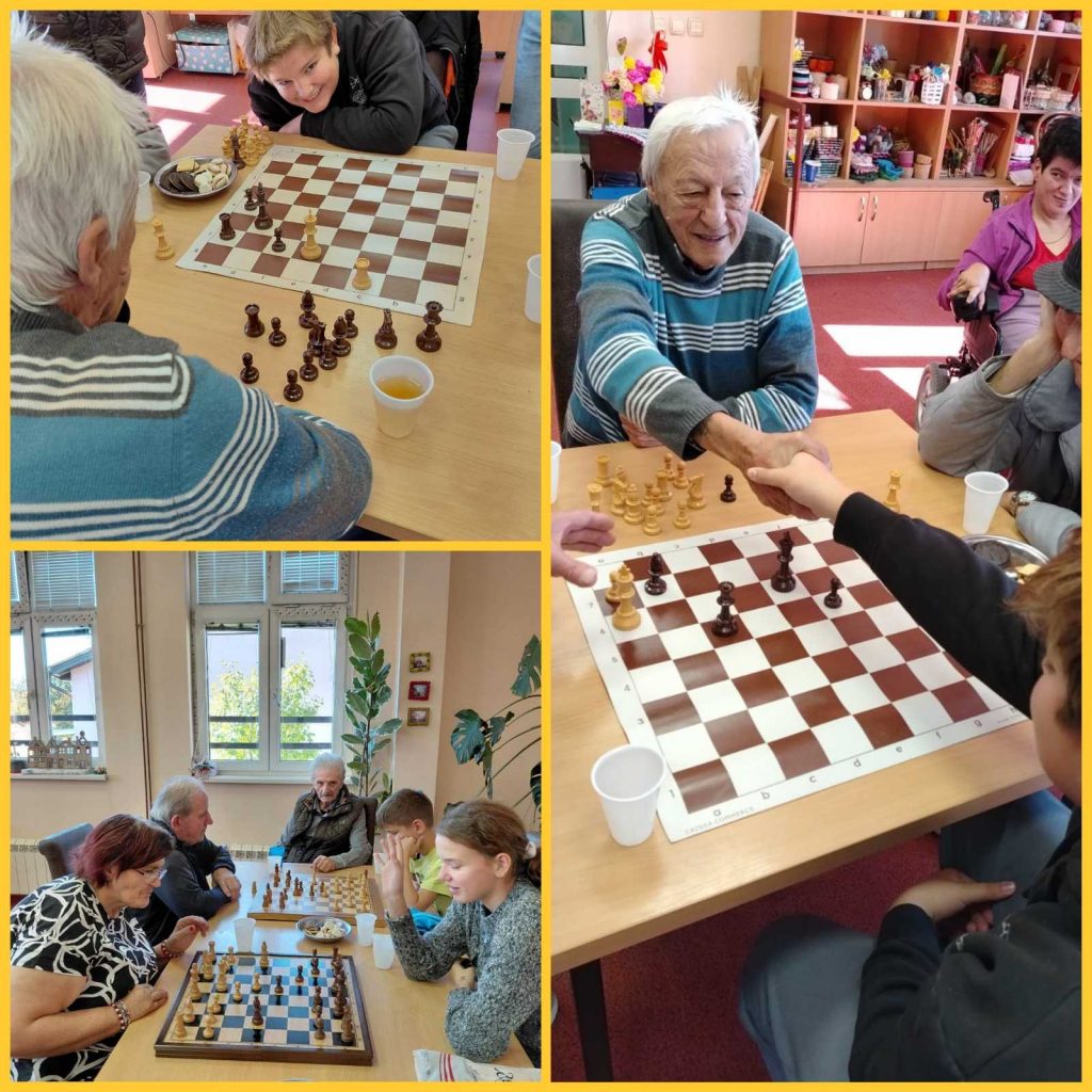 Након посете наших ученика и колега Дому за стара лица на Забучју, поводом Дана старих особа, договорено је да наши млади шахисти одмере снаге са искусним шахистима и тиме једни другима улепшају један јесењи дан.