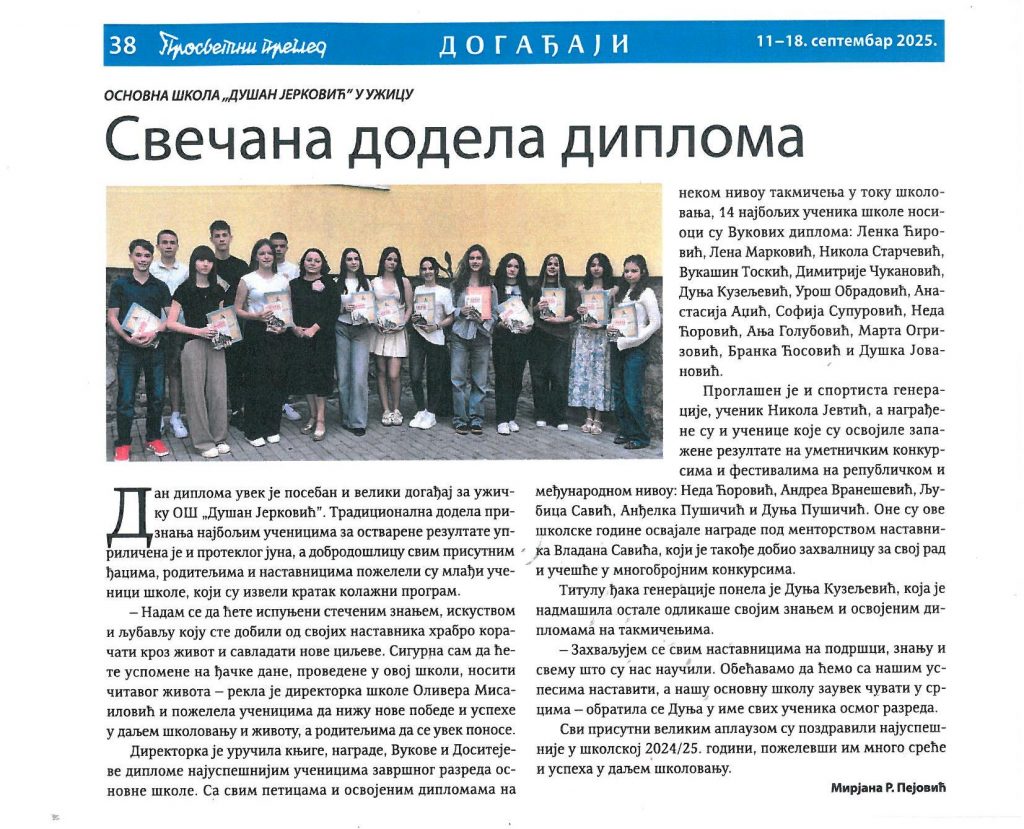 Часопис Просветни преглед објавио је два прилога о нашој школи.