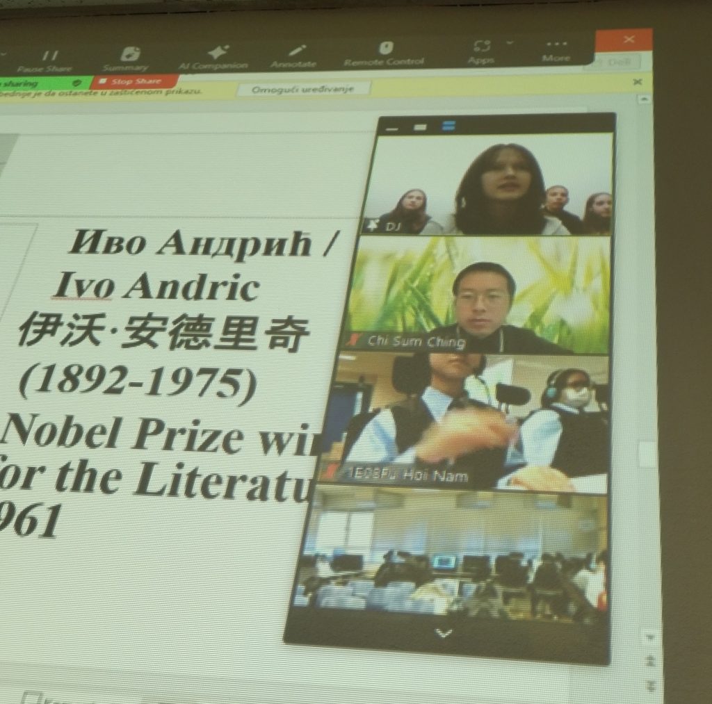 заставе, химне, школе, библиотеке… Зближили су нас спортисти, научници, писмо, национална књижевност. Уживали смо у читању поезије на кинеском језику, ученици из Хонгконга уживали су слушајући песму Тамо далеко коју су певале наше ученице. Певали