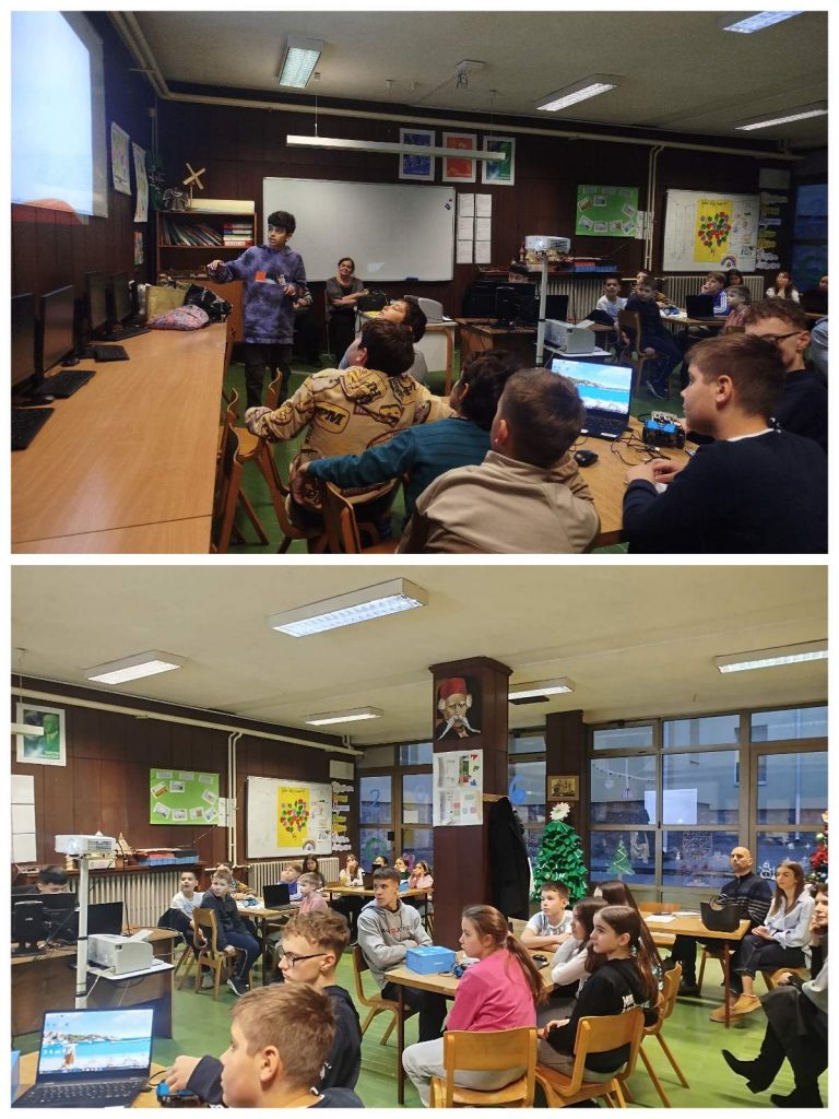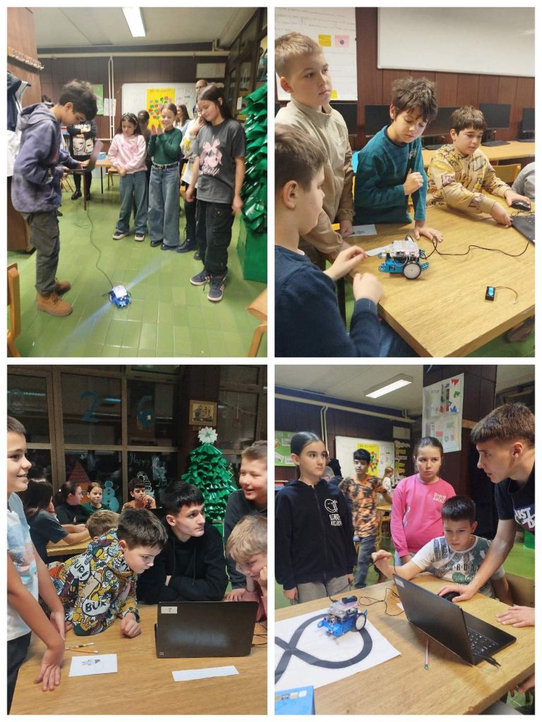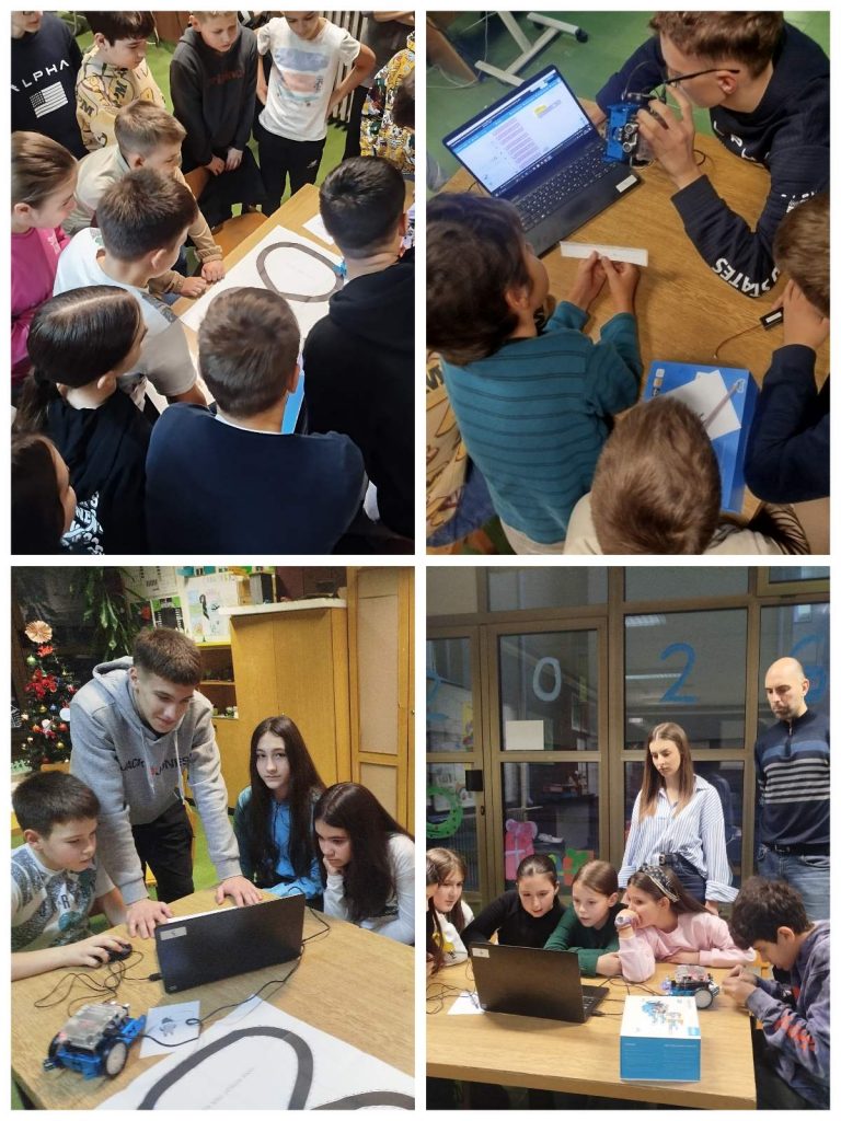 Угледна активност наставнице Информатике и рачунарства Снежане Синђелић и учитељице Иване Пантовић, зближила је ученике 7/2 и 4/5. Кроз међувршњачку едукацију седмаци су четвртацима приближили функционисање робота, објаснили како су они настали, где их све користимо… Ова тема је јако интересантна ученицима. У оквиру групе требали су да програмирају роботе и задају наредбе где ће роботи да се окрећу, светле, свирају, покрећу напред-назад…. Ученици четвртог разреда су одушевљени оваквим активностима и мотивисани су да наставе са програмирањем и учењем Информатике и рачунаства.