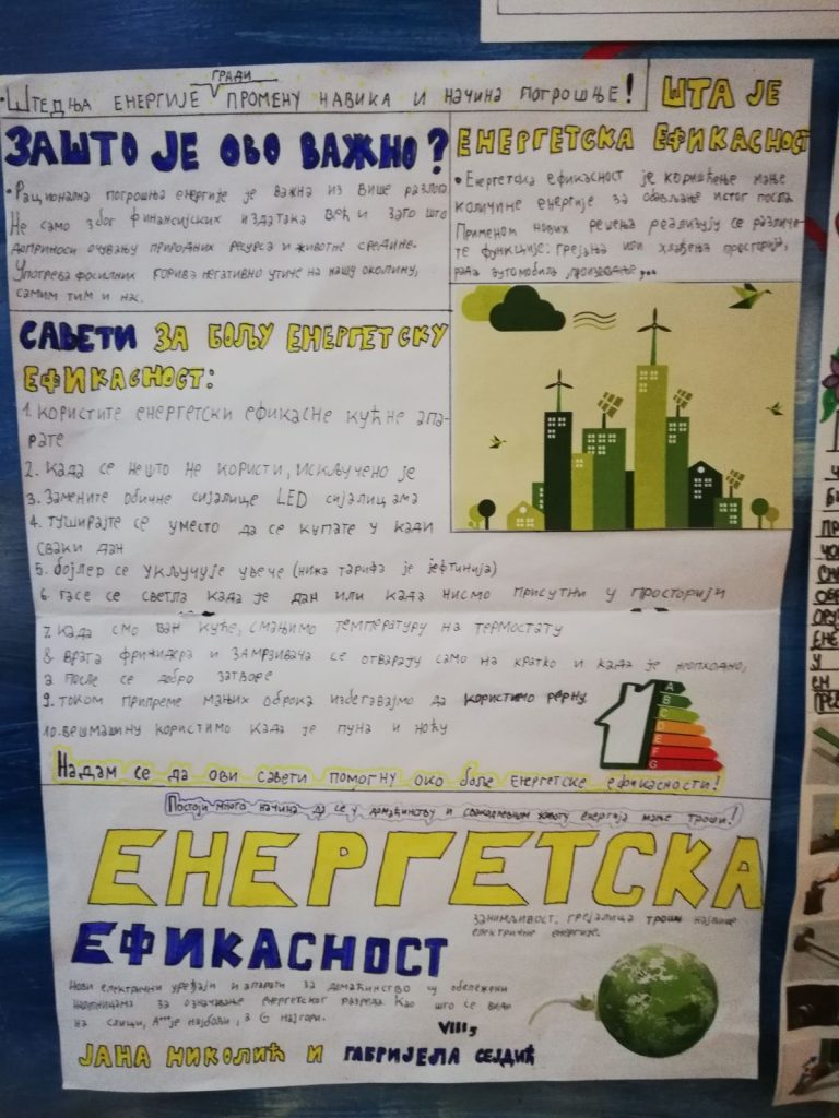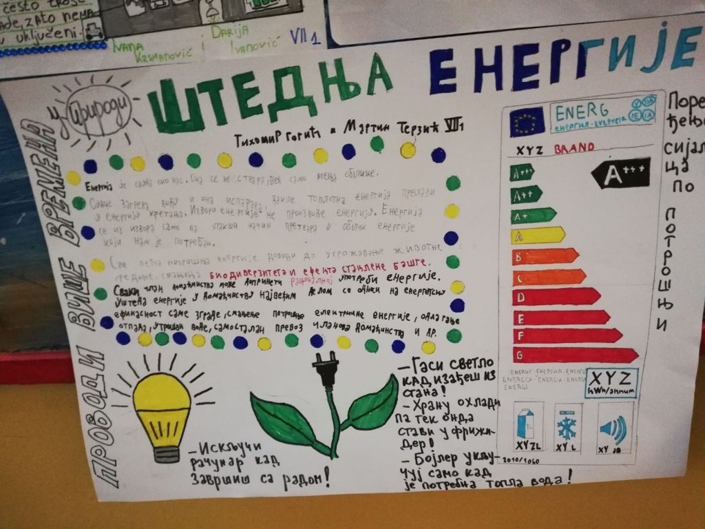 “ Енергију штеди да ти новац више вреди!“, креативни је слоган наших ученика који су на часовима технике и технологије дали конкретне препоруке за уштеду електричне енергије.