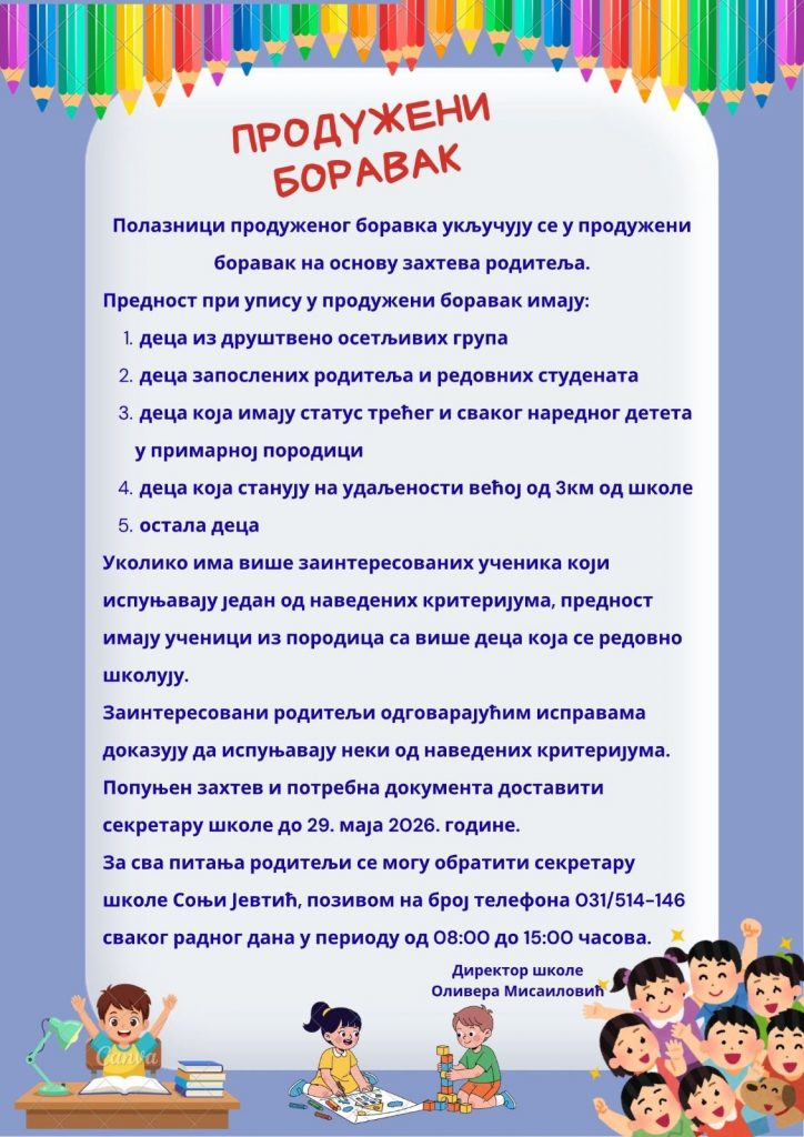 ОБАВЕШТЕЊЕ -ПРОДУЖЕНИ БОРАВАК